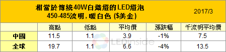 2017/05/04 2017年04月全球LED燈泡零售價。
